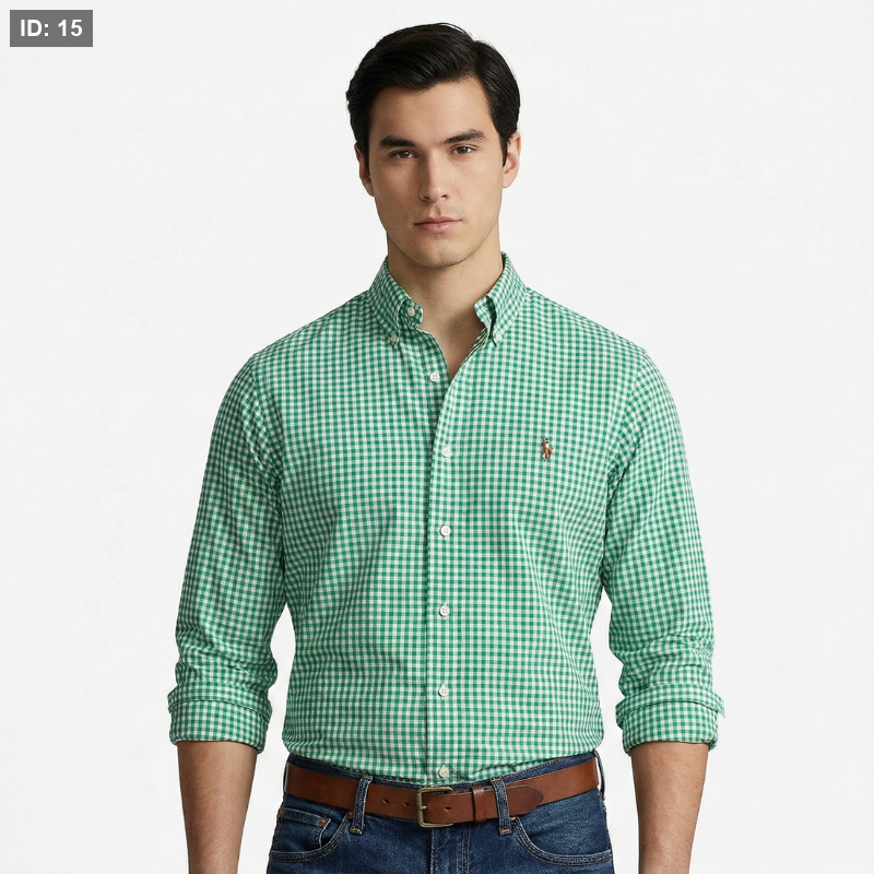 قميص Polo Ralph Lauren الرجالي الأصلي بتصميم كاروهات كلاسيكي يعكس أناقة العلامة المعروفة بالبساطة الراقية.